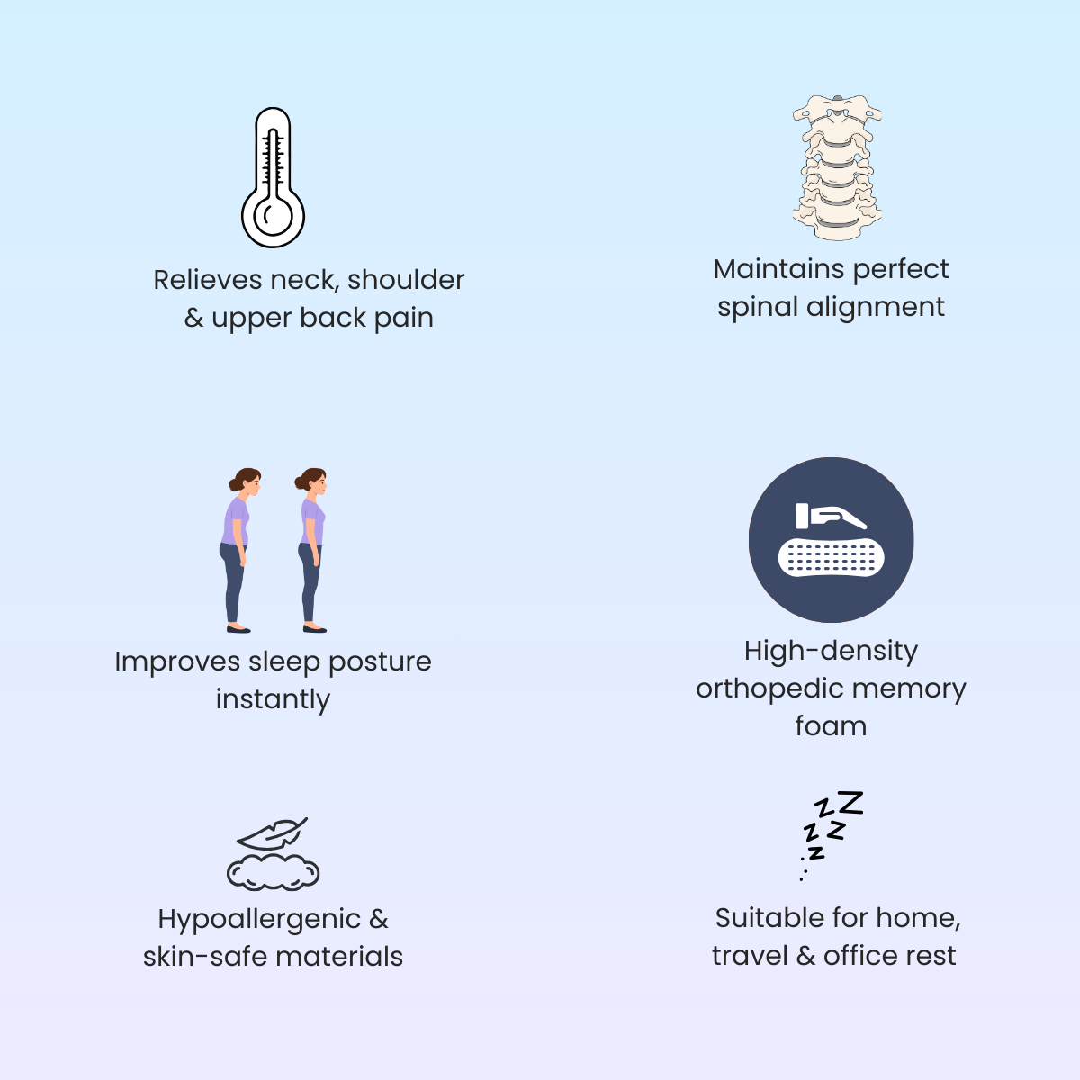 The dual-height ergonomic shape keeps your cervical spine in a natural curve, reducing strain on joints and discs.