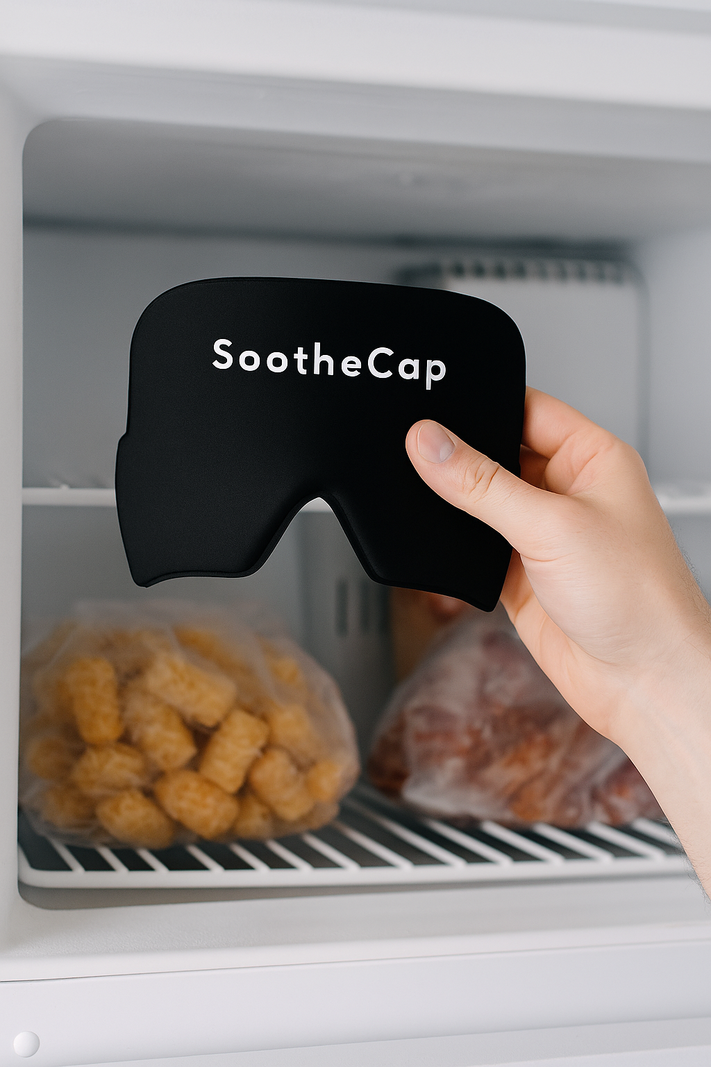 Place your SootheCap™ in the freezer for 1–2 hours to activate cold therapy.